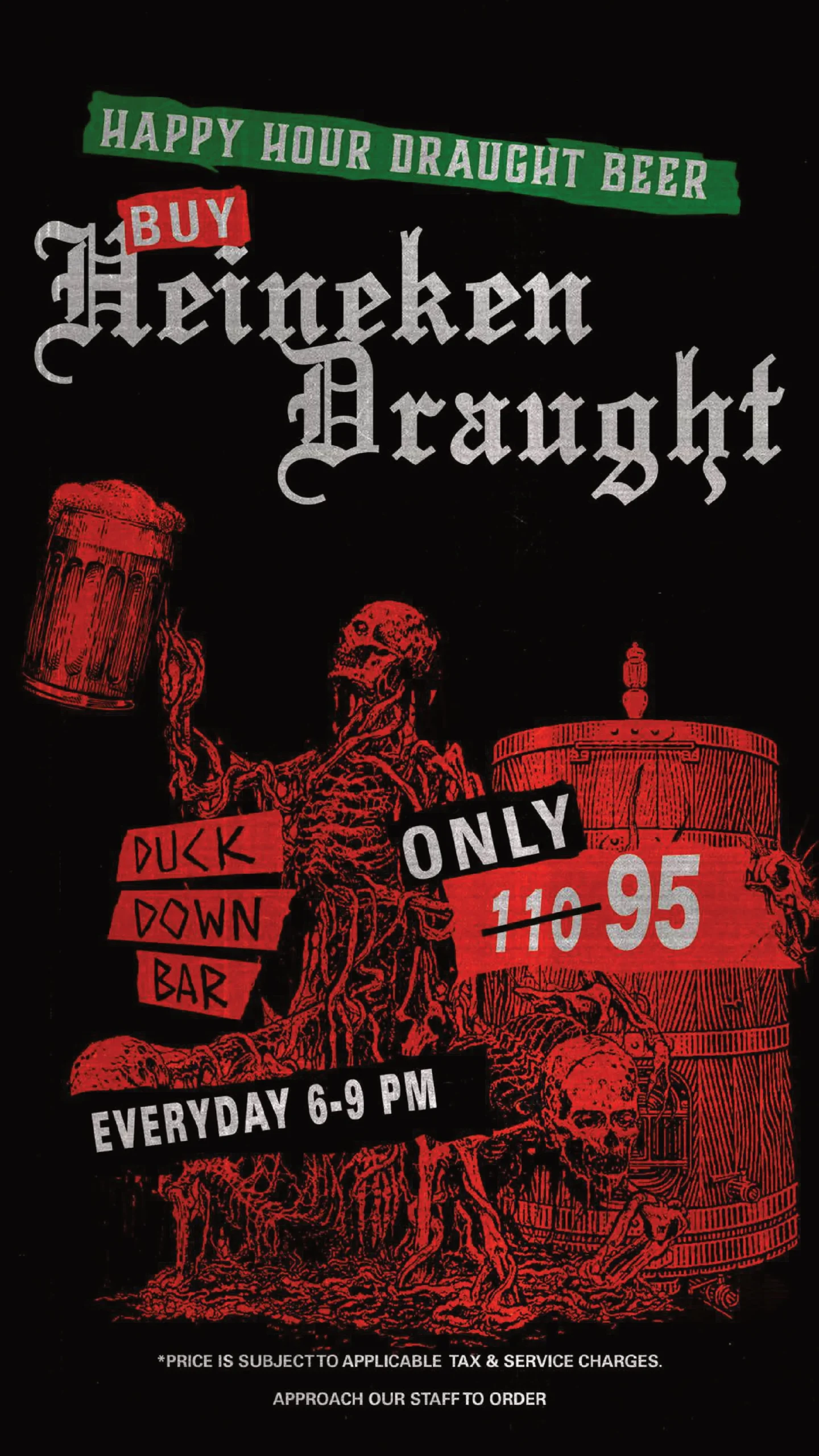 Duck Down Bar punya karakter yang beda. Begitu lo turun ke basement, lo bakal disambut suasana dive-bar ala Amerika dengan dinding penuh poster band rock dan neon lights yang bikin suasana jadi nostalgic tapi tetap elektrik. Musiknya murni rock & metal dari era 80-90an sampai pop guilt-pleasure yang bikin lo goyang spontan. Crowd-nya santai tapi energik, bukan tempat buat yang pengen ngobrol pelan, tapi buat lo yang pengen night out dengan suara bass dan shot yang ga takut.