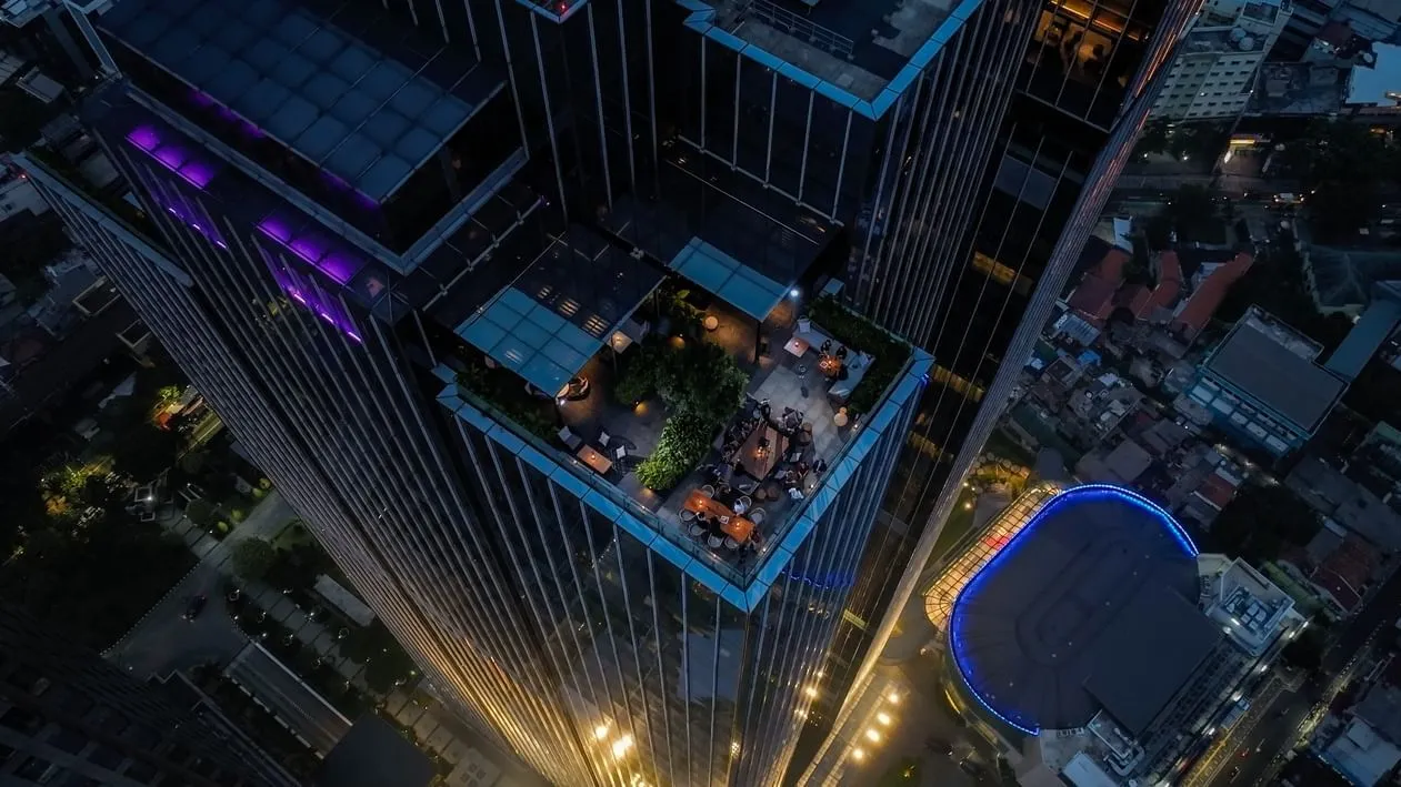 KITA Bar adalah rooftop bar premium yang ngasih lo pengalaman malam dengan skyline Jakarta di atas kepala. Ruangannya nggabung indoor lounge dan outdoorterrace, jadi lo bisa milih duduk di sofa cozy sambil ngobrol santai atau keluar buat nikmatin angin malam kota sambil nunggu sunset. Dukungannya: DJ live beberapa malam seminggu, cocktail signature, dan small bites bergaya Izakaya — jadi suasana bisa santai banget atau berubah jadi party vibe layak klub. Kalau lu pengen night out classy tapi ga berlebihan, KITA Bar hit banget buat hangout, after-work, atau ngerayain sesuatu.