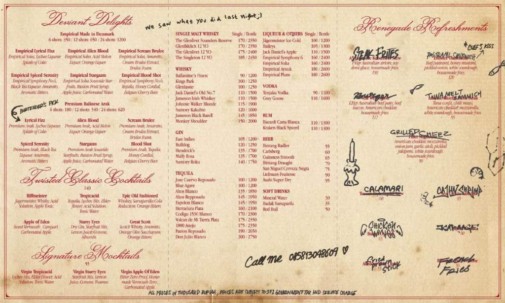 Tempat ini jadi persinggahan sempurna sebelum lo lanjut ke spot yang lebih ramai, atau bahkan tempat buat ngabisin malam di satu titik aja. Bukan cuma sekadar bar, Ratatat adalah statement: kecil, gelap, dan punya karakter yang kuat.