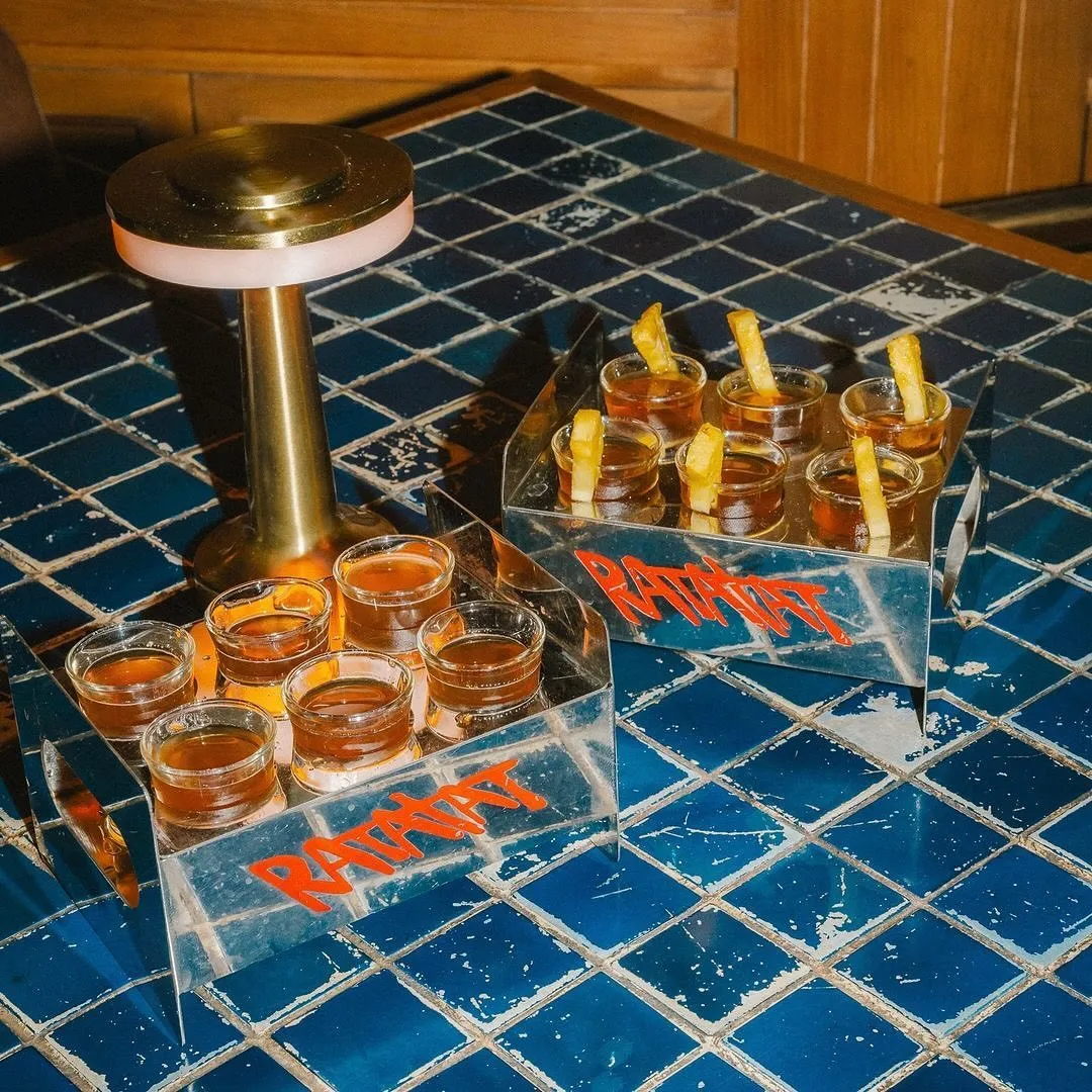 Terletak di jantung Melawai, Ratatat jadi salah satu bar yang paling mencolok di antara deretan hidden gems Blok M. Dari luar terlihat understated, tapi begitu masuk, suasananya langsung berubah jadi dunia lain—intimate, temaram, dan penuh energi lowkey yang pelan-pelan naik seiring malam berjalan.
