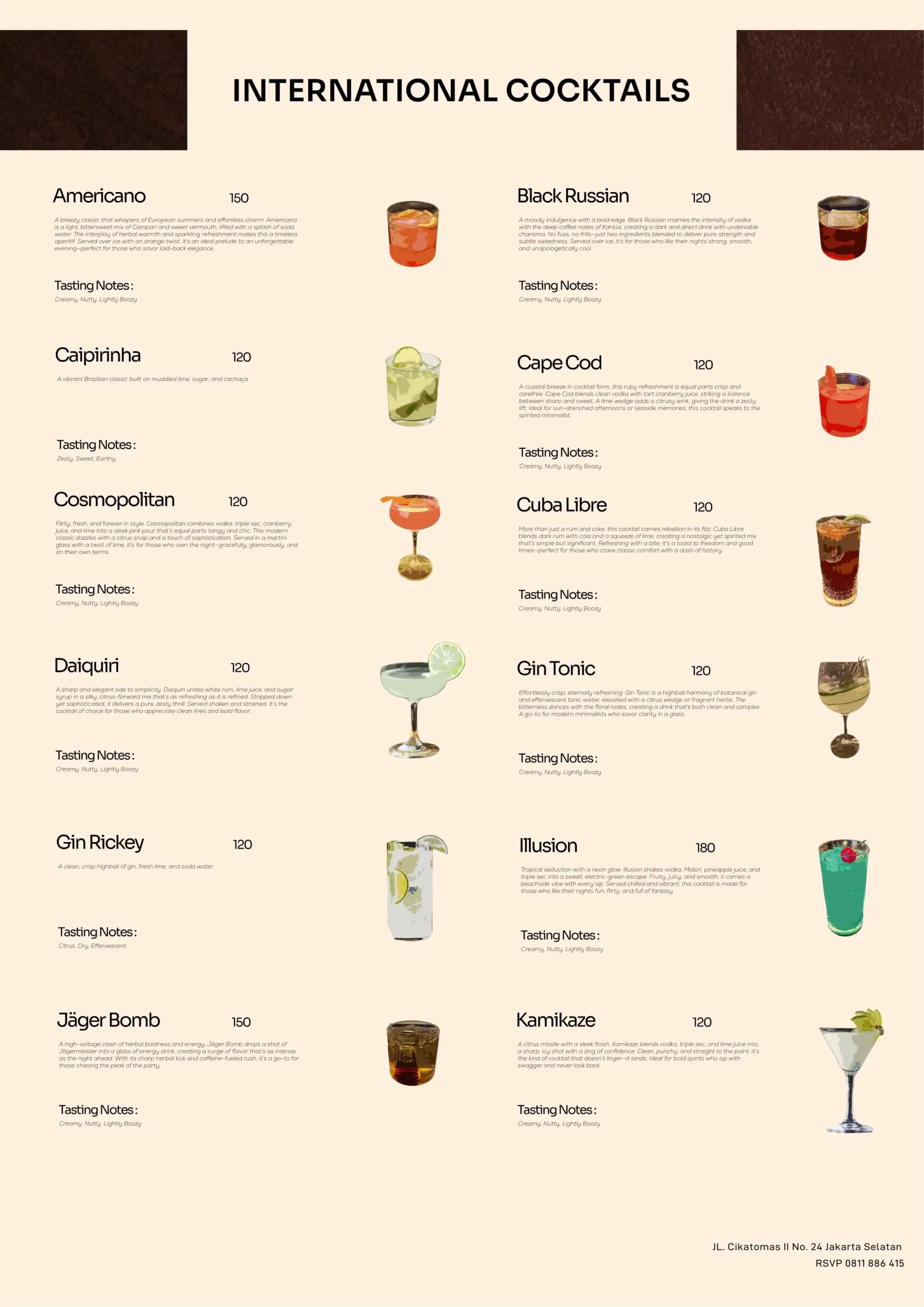 Modern lifestyle space yang punya dua mode: dinner yang chill dan malam yang panjang. Interiornya bergaya modern dengan furniture lounge kayu dan ornamen lampu neon merah menciptakan atmosfer yang moody, intimate,dan punya energi tersendiri, nggak terlalu besar, nggak terlalu kecil, tapi selalu "full of soul".