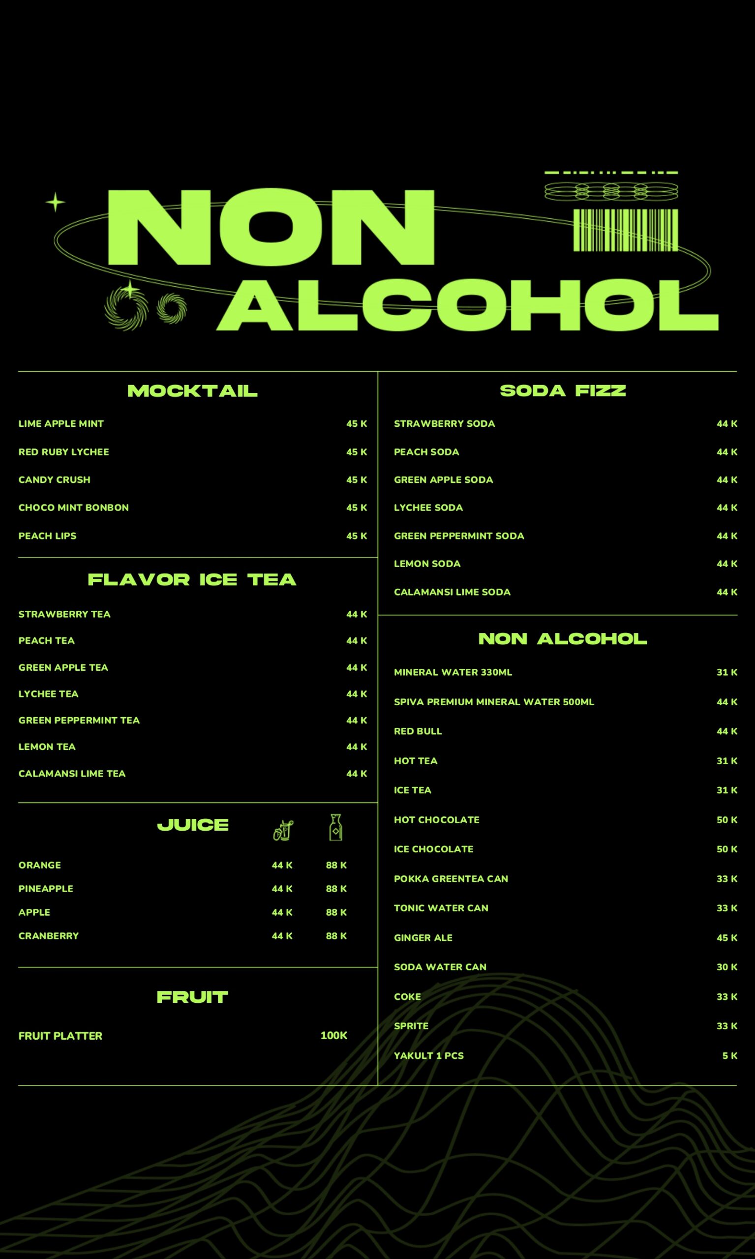 Menu makanan dan minumannya juga bukan sekadar formalitas. Harga masih masuk akal untuk kawasan Kemang, dan servis dari stafnya terbilang solid bahkan di malam-malam yang paling ramai sekalipun.